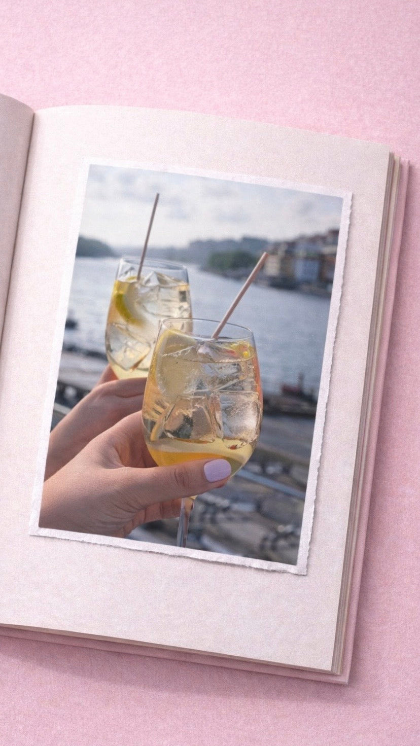 Uma imagem vale mais que mil palavras. O livro inclui espaços dedicados para colares as tuas fotos favoritas, transformando o diário num álbum visual único.